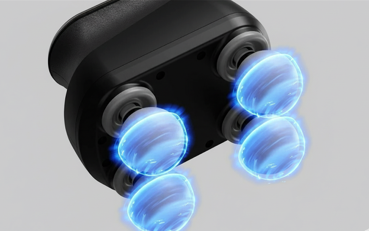 تعمل أربعة رؤوس معًا لتوفير الراحة على نطاق واسع. هدئ ظهرك أو كتفيك أو ساقيك بسرعة أكبر من أي وقت مضى.