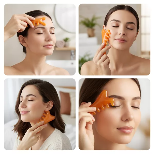 يبدو الوجه مرتاحًا بعد استخدام أداة جوا شا من أورتوريكس. الحركات اللطيفة تخفف التوتر وتقلل الانتفاخ تحت العينين، مما يجعلك تبدو منتعشًا.
