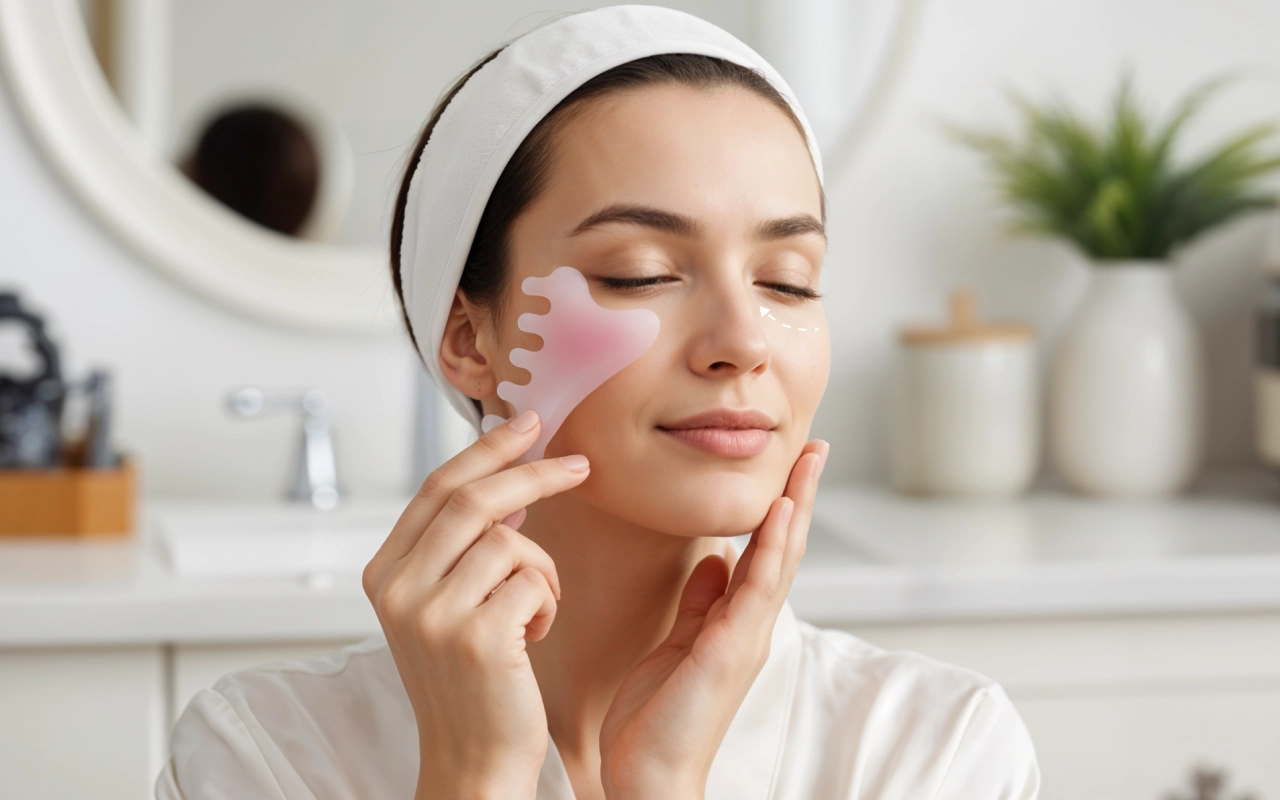 يبدو الوجه مرتاحًا بعد استخدام أداة جوا شا من أورتوريكس. الحركات اللطيفة تخفف التوتر وتقلل الانتفاخ تحت العينين، مما يجعلك تبدو منتعشًا.