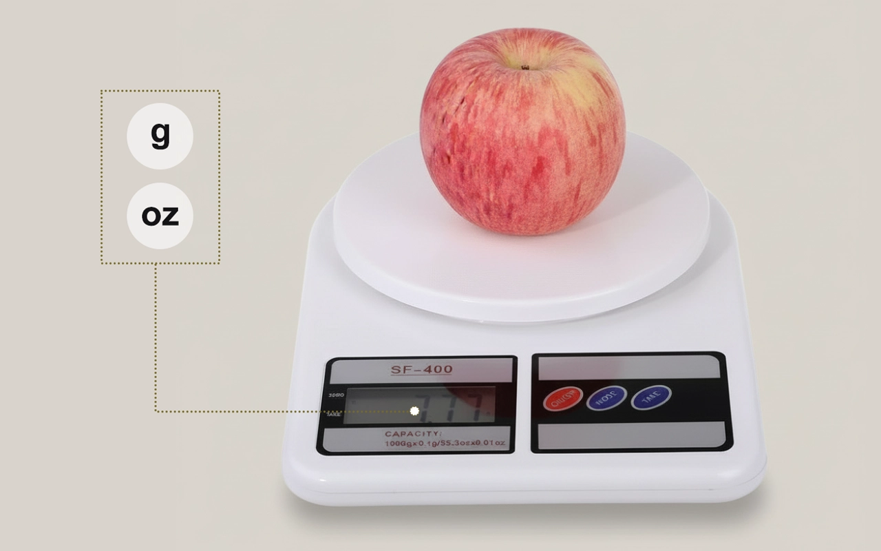 يتيح لك ميزان المطبخ اختيار الوحدة بين الأونصة والكيلوغرام.