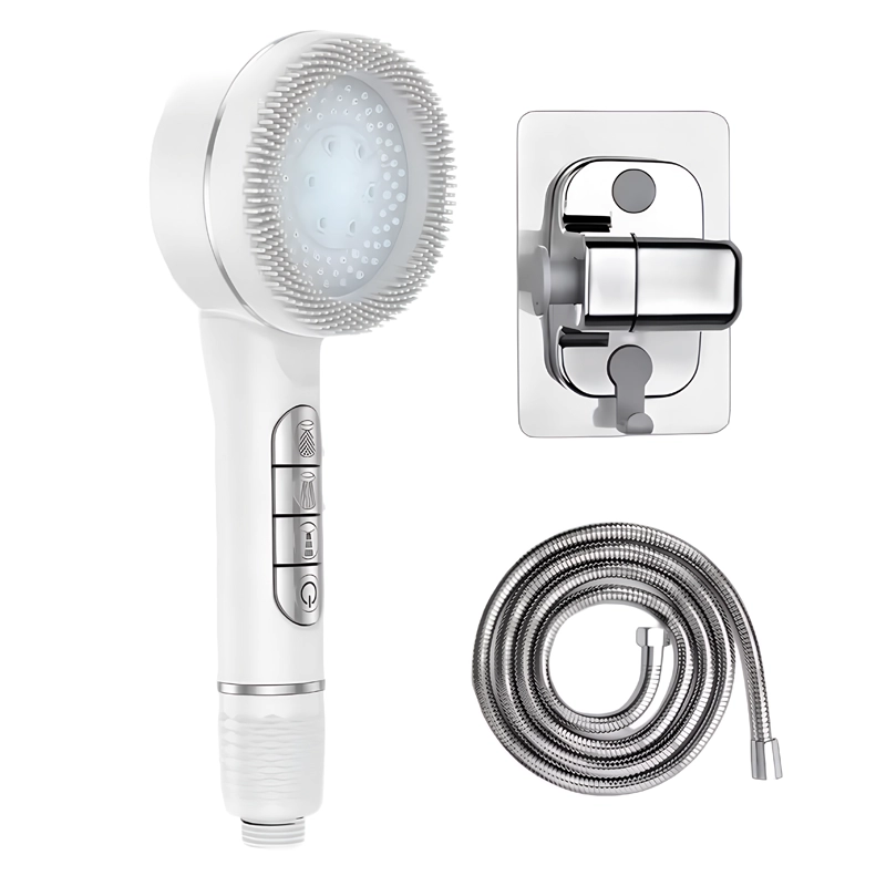 فرشاة السيليكون أزالت بقع الصابون بسهولة. الاستحمام الآن أصبح متعة يومية. زر الإيقاف الفوري عملي جداً.