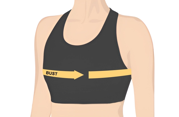 - 2. لقياس الصدر، لفي شريط القياس حول أعرض جزء من صدرك. تأكدي من بقاء الشريط أفقيًا. ثبتيه جيدًا دون شده بقوة.
