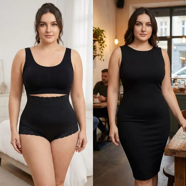 هذه هي خياري اليومي للارتداء. أحب كيف أن بطني أصبح مسطحاً أكثر. لا تظهر أي خطوط، وكل شيء يبقى في مكانه.