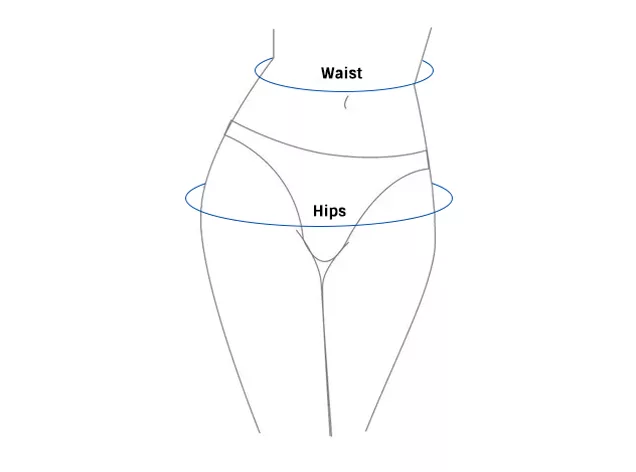 - 1. لف شريط القياس حول أضيق جزء من خصرك وأعرض جزء من أردافك.