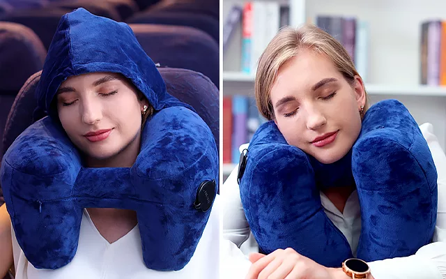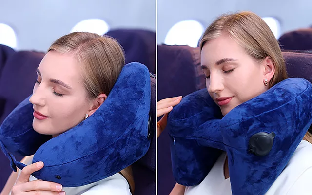 لا مزيد من آلام الرقبة خلال الرحلات الطويلة أو السفر بالسيارة. وسادة الرقبة القابلة للنفخ مع غطاء للرأس من توفر الراحة في كل مغامرة. الغطاء الناعم يشعر باللطافة على بشرتك ويساعدك على الاسترخاء. النفخ السريع يجعلها جاهزة في ثوانٍ.