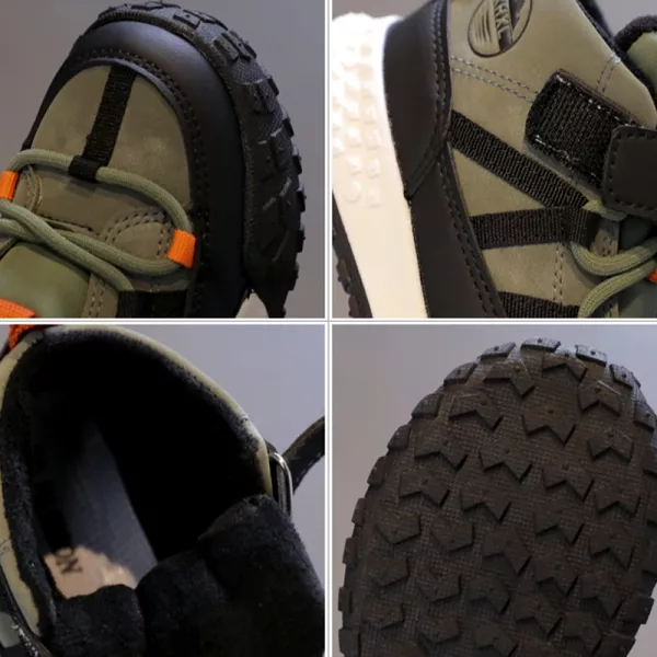 النعل المزخرف يساعد على تقليل الانزلاق على الأرض الرطبة أو الجليدية. يشعر الأطفال بثقة للتحرك بسرعة على أي سطح.