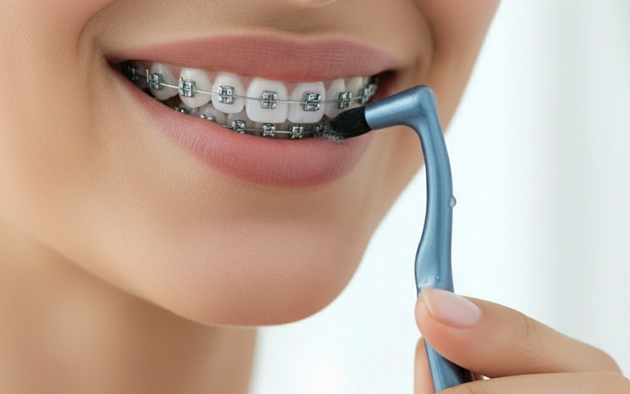 الشكل الخاص ينزلق بسهولة حول الدعامات والأسلاك. يحافظ على نظافة تقويم الأسنان ولا يسبب أي إزعاج.