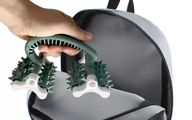 العجلات الصغيرة في هذه الأسطوانة تجعل بشرتي تشعر بوخز خفيف وتجعل ساقي أخف. ألاحظ أن التصلب أقل بعد المشي. تناسب حقيبتي تمامًا أيضًا!