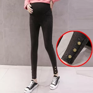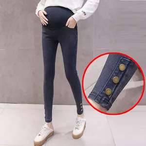 يسمح لكِ حزام الخصر المطاطي بتنظيم مقاس البنطال الجينز مع نمو بطنك.