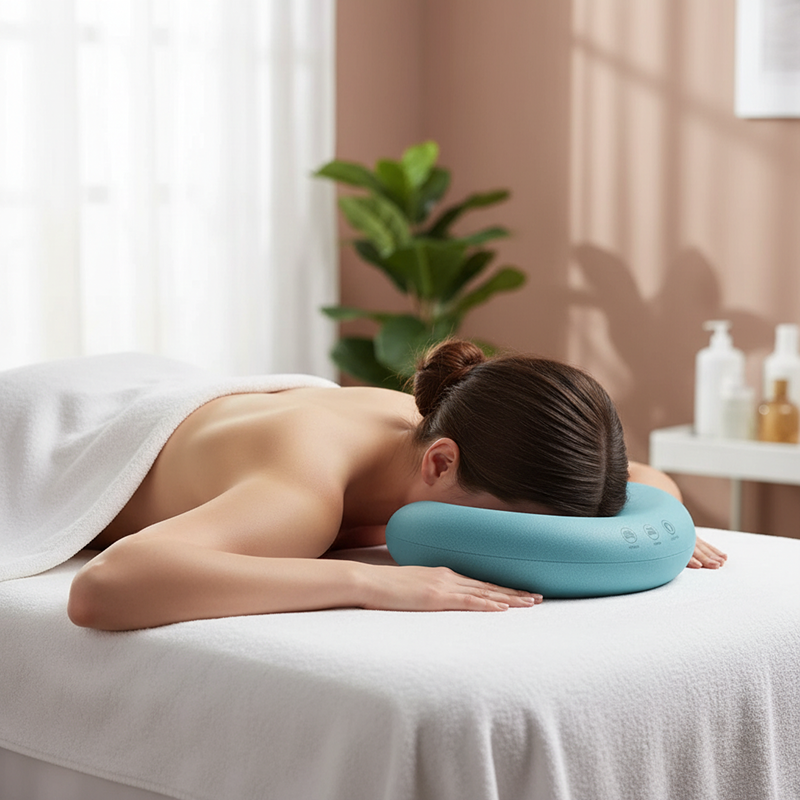 استرخِ بسهولة أثناء الاستمتاع بالاسترخاء المهدئ. الفتحة الفريدة توفر دعمًا لطيفًا دون الضغط على الخدين. كل لحظة تقضيها تساعد في تخفيف التوتر وتترك رقبتك منتعشة. مصممة للاستخدام المنزلي والمنتجعات الصحية المهنية.