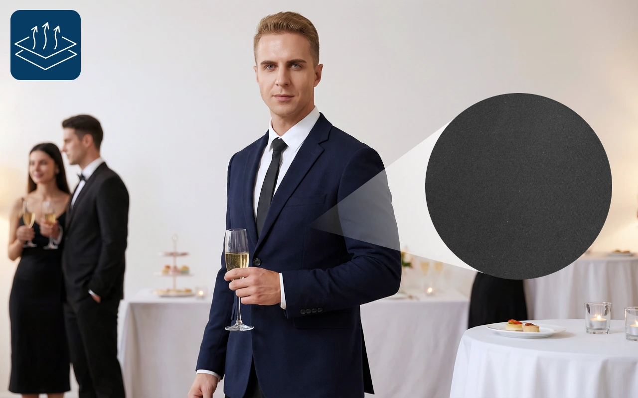 المادة القابلة للتنفس تبقى باردة وخفيفة تحت أي ملابس. بدون قلق من الضغط أو الضيق، يمكنك التحرك بسهولة.