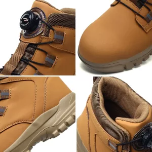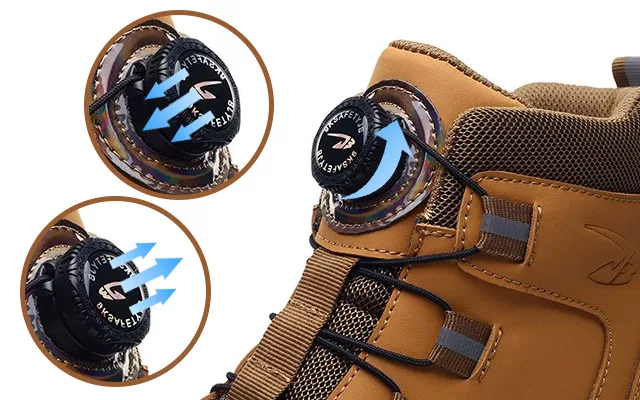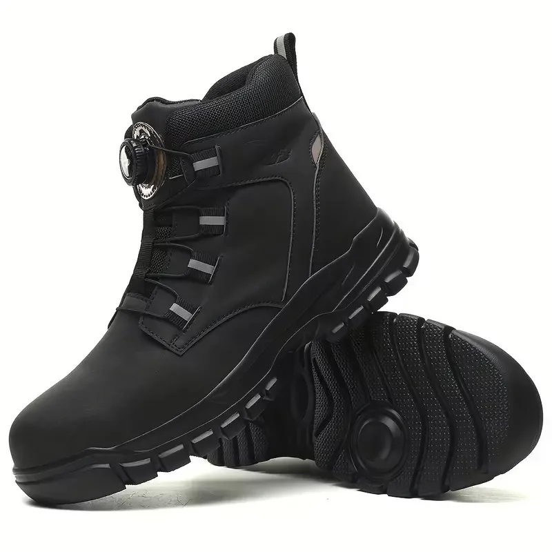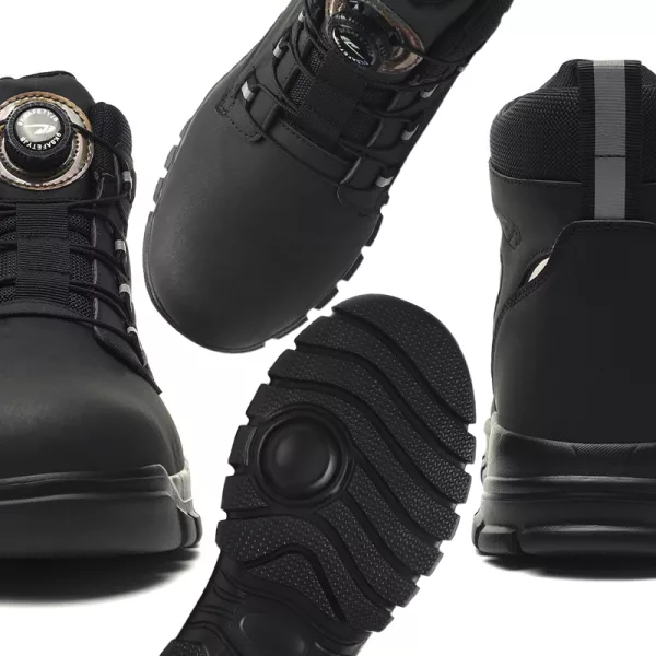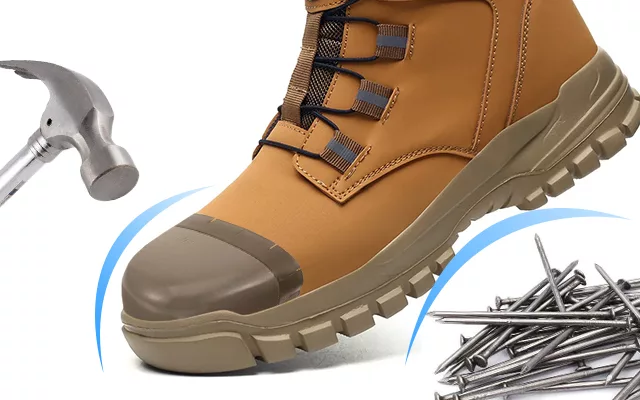 أغطية الأصابع الفولاذية تحمي من سقوط الأدوات أو الصدمات المفاجئة. النعل الأوسط من الكيفلار يمنع المسامير الحادة من اختراق القدمين.