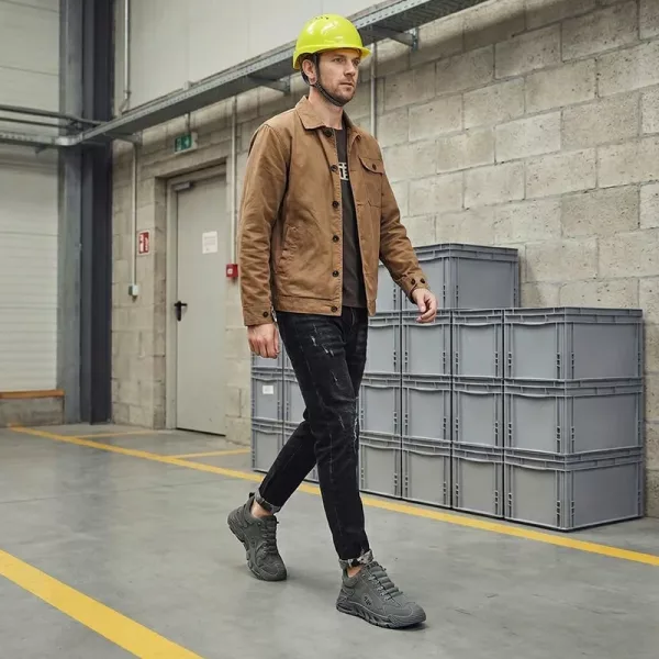اشتريت هذه الأحذية لزوجي. يحب مدى سرعة ارتدائها قبل العمل، وواقٍ الأصابع القوي يجعله مرتاحًا في المستودع.