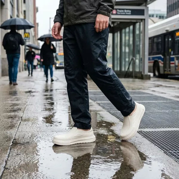اشتريتها لاستخدامها في التنقل اليومي والمشي مع الكلب. أرتديها بسرعة، تبقي جواربي جافة، وتمنحني تماسكًا أفضل على الأرصفة المبللة من حذائي الرياضي القديم.