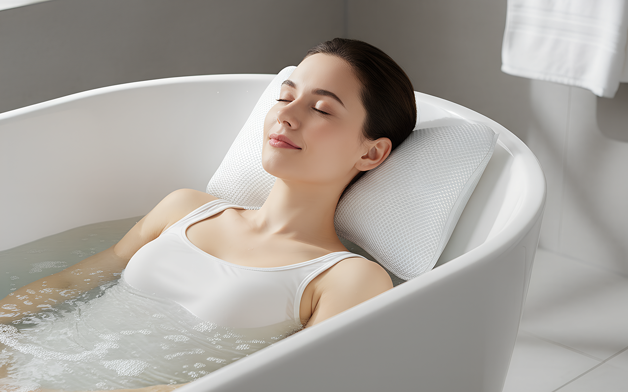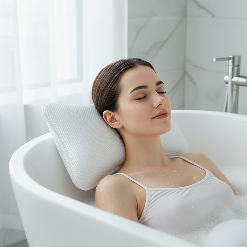 بعد أيام العمل الطويلة، هذه الوسادة للحمام تبدو وكأنها نعيم. رقبتي تجلس بشكل مريح ولم أعد أشعر بأي آلام بعد الاستحمام.