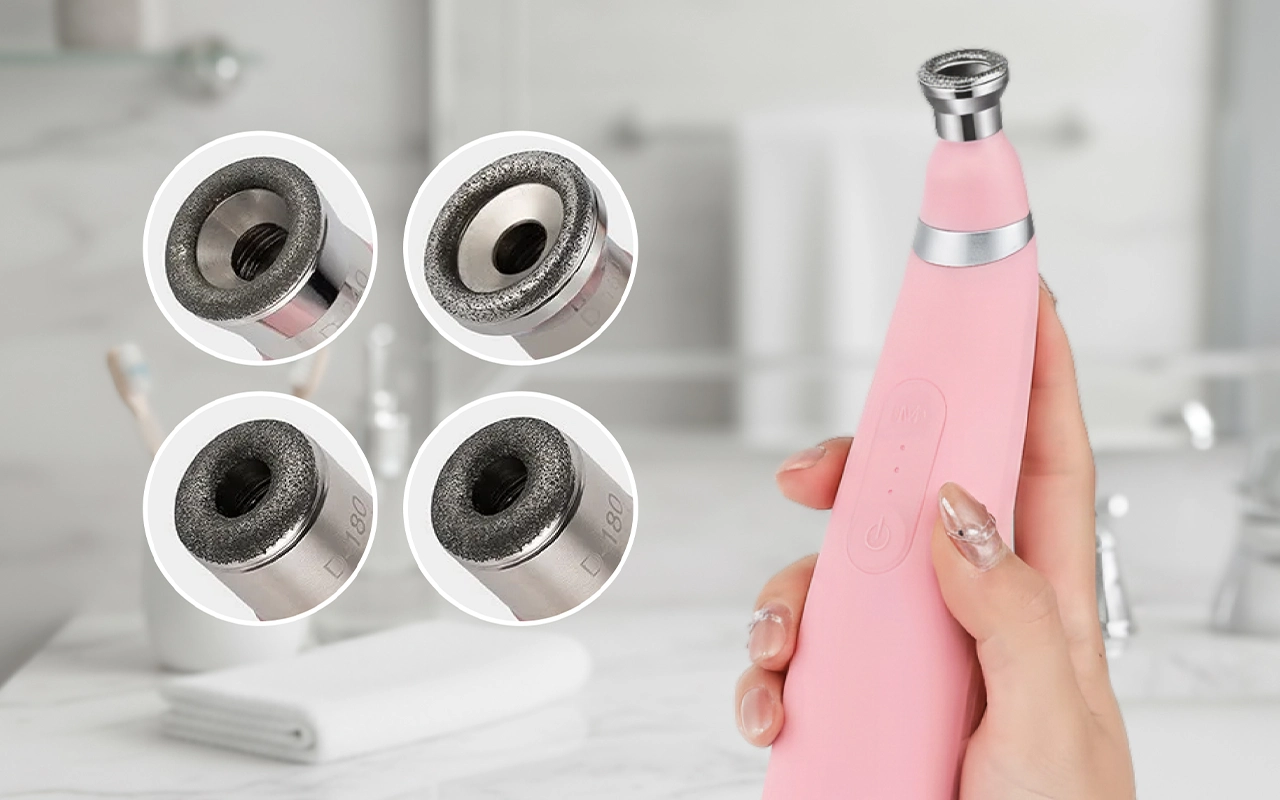 أزيلي الخلايا الميتة ليظهر سطح جديد وصحي. أطراف الألماس الناعمة تجعل كل علاج آمنًا وسلسًا.