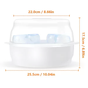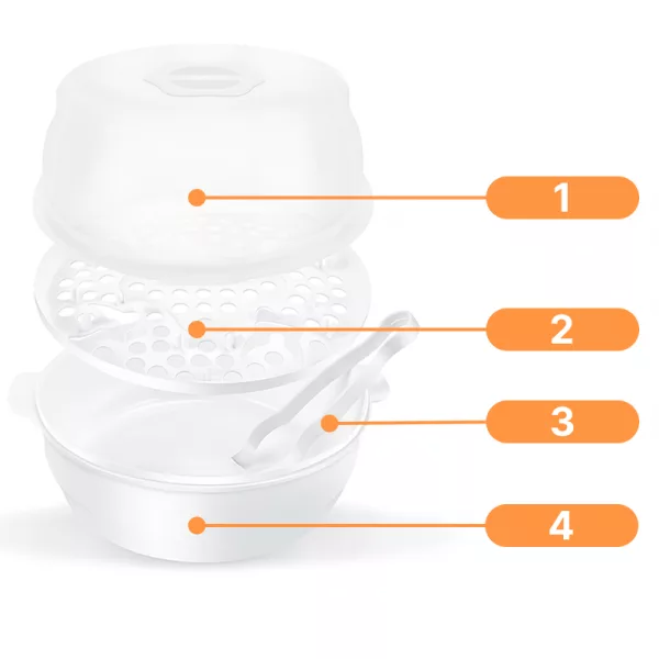 معقم زجاجات أورتركس بالبخار مصنوع من بلاستيك خالٍ من BPA. لا تتلامس أية مواد كيميائية ضارة مع زجاجات طفلك أو لهاياته.