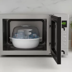 يناسب الميكروويف بسهولة ويعمل أسرع بكثير من غلي الماء. أثق به ليحمي زجاجات طفلي من الجراثيم.