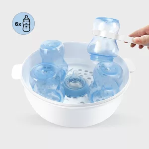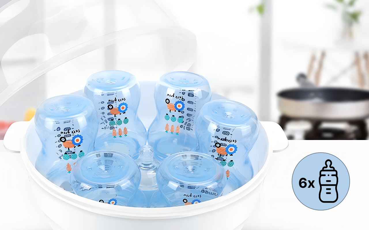 الحفاظ على نظافة أغراض الطفل بشكل مثالي أصبح سهلاً كل يوم. البخار يقضي على الجراثيم بسرعة ليبقى طفلك آمناً. ست زجاجات تتسع بسهولة، مما يعني تقليل عدد الدورات المطلوبة.