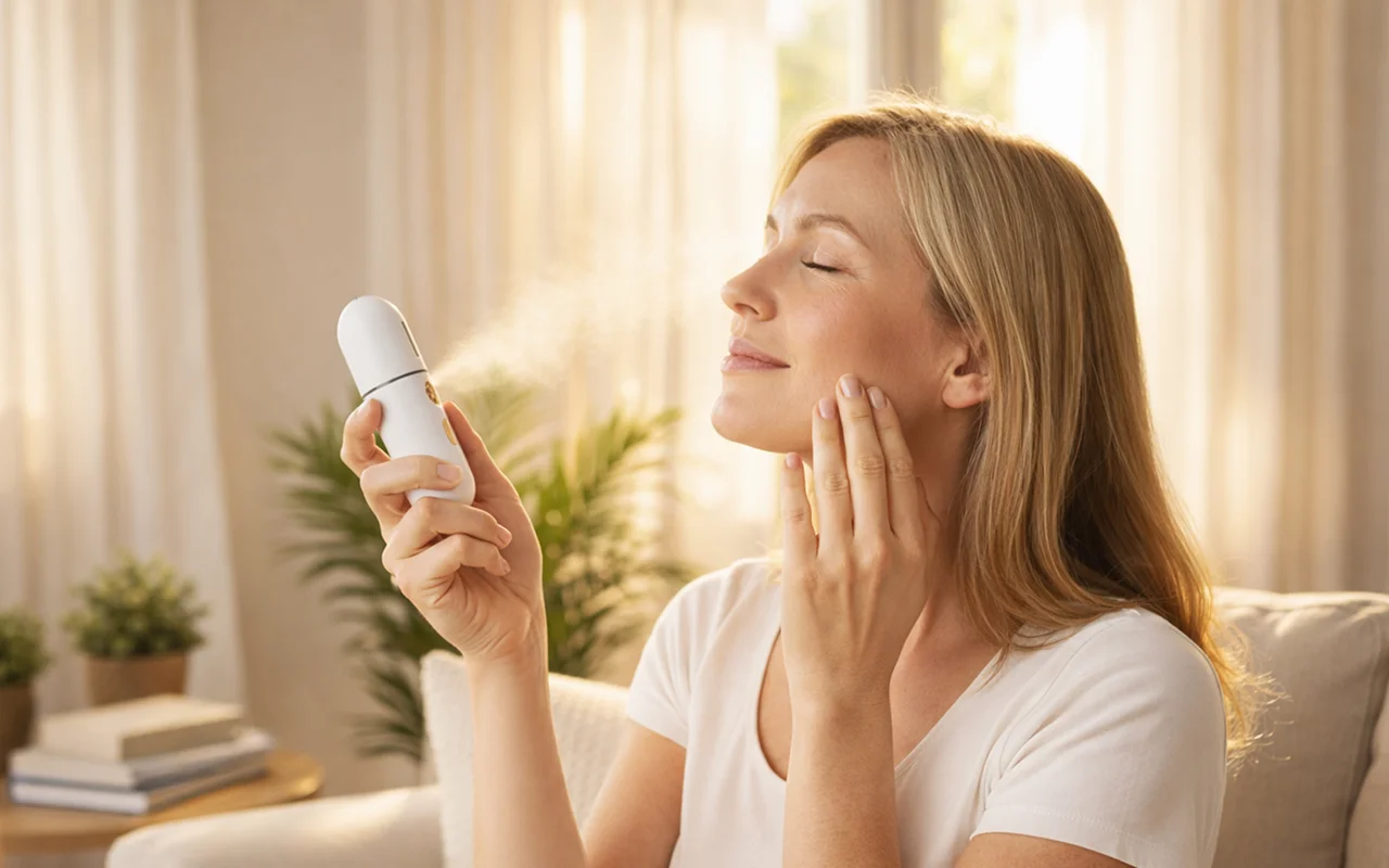بعد يوم طويل، عادة ما أشعر بجفاف في وجهي، لكن الآن أستخدم هذا الجهاز الصغير لبضع ثوانٍ فقط وأشعر بتحسن كبير.