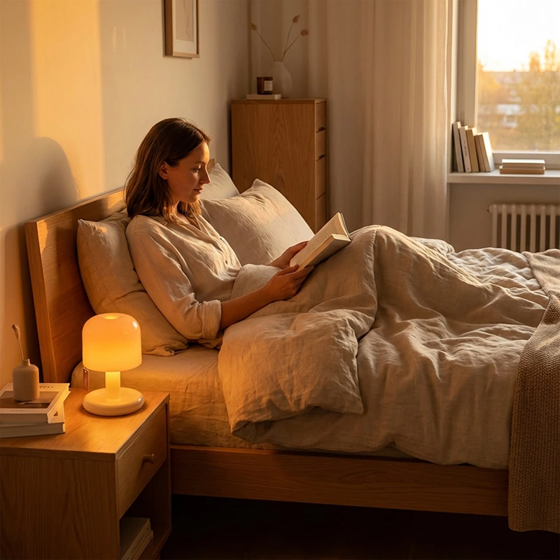أشحن المصباح أثناء العشاء ويستمر طوال الليل. لون الضوء الدافئ يجعل الجو مريحًا ويساعدني على النوم أسرع.
