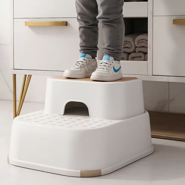 مستويان يسمحان للصغار بالوصول بسهولة إلى الأسطح العالية. تصبح المهام مثل غسل اليدين أو تنظيف الأسنان سهلة للغاية.
