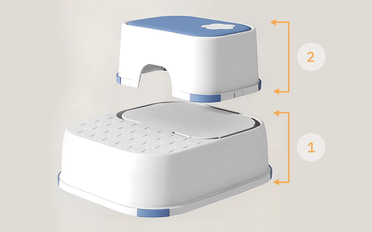 مستويان يسمحان للصغار بالوصول بسهولة إلى الأسطح العالية. تصبح المهام مثل غسل اليدين أو تنظيف الأسنان سهلة للغاية.