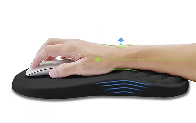 تطبق استراحة المعصم المبطن من لراحة معصمك، وتخفف من الانزعاج خلال الساعات الطويلة. إنها تحافظ على توازن اليد طبيعيًا، مما يساعد في منع الإجهاد اليومي.