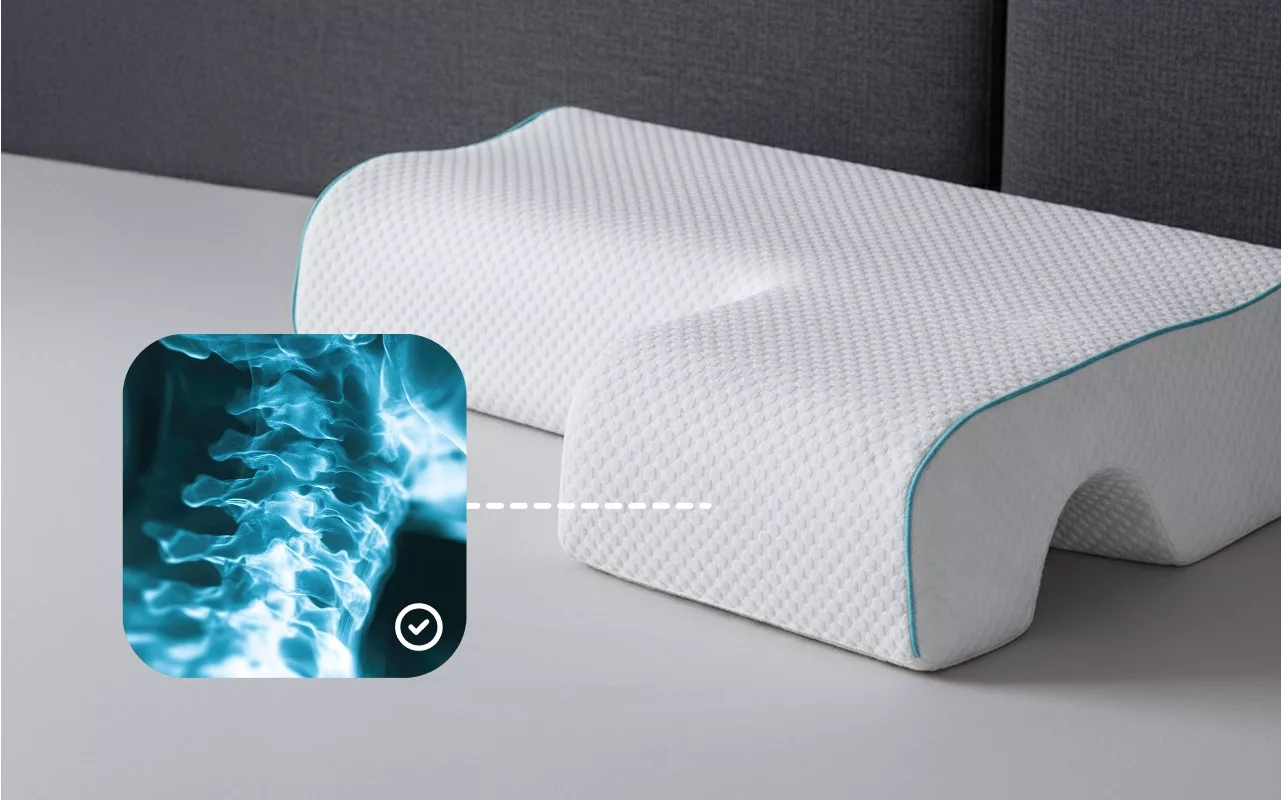 المحاذاة الصحيحة للرأس والرقبة تقلل من الألم والتيبس. التصميم الطبي يساعد في تحسين وضعية الجسم أثناء النوم.