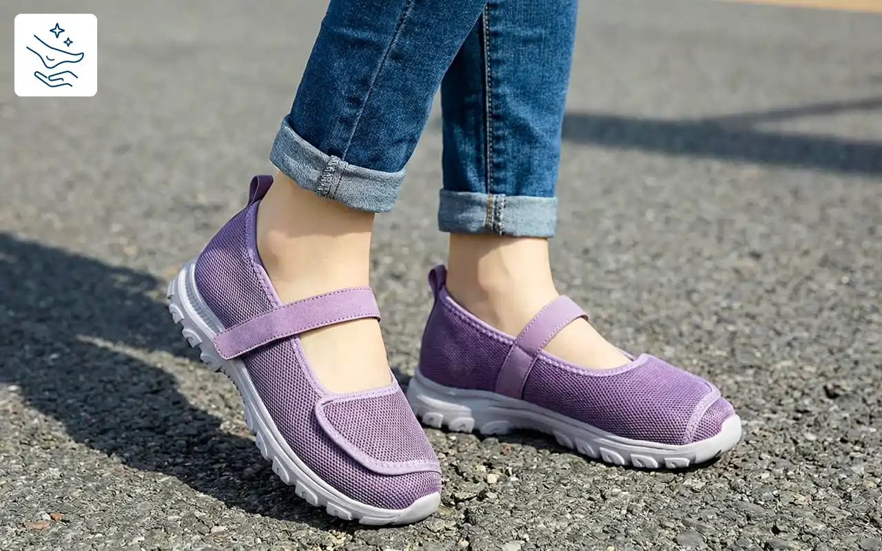حذاء طبي مسطّح واسع بمشبك فيلرو مسامي سهل الارتداء