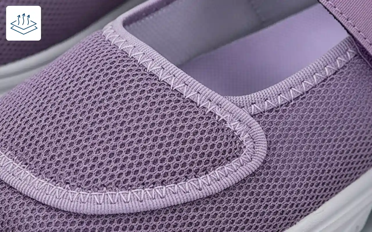 قماش يسمح بمرور الهواء يحافظ على برودة وجفاف البشرة، مما يقلل التهيج. تحافظ البنية على الثبات مع بقاء الملمس ناعماً على القدم.