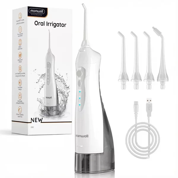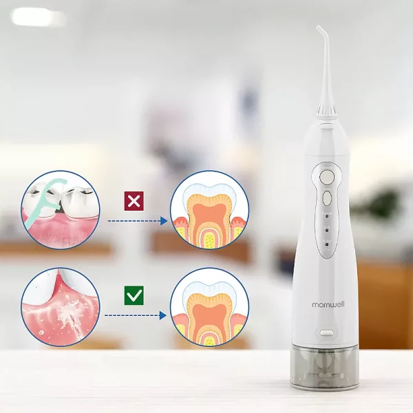 يجعل جهاز الري تنظيف الأسنان أكثر فعالية. يصل ضغط الماء إلى كل زاوية لا يستطيع الخيط العادي والفرشاة الوصول إليها. وهذا يقلل من الكمية الإجمالية للبكتيريا والبلاك بين الأسنان. يمكن أن يعطي نفساً منعشاً على الفور. وعلاوة على ذلك، فإن جهاز الري الفموي الخاص بنا مناسب لتقويم الأسنان وزراعة الأسنان والتيجان والجسور وهو أرخص من زيارات طبيب الأسنان.