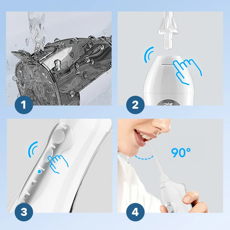 يشتمل جهاز الري الذي نقدّمه على ثلاث فوهات للتنظيف المنتظم ومكشطة اللسان.