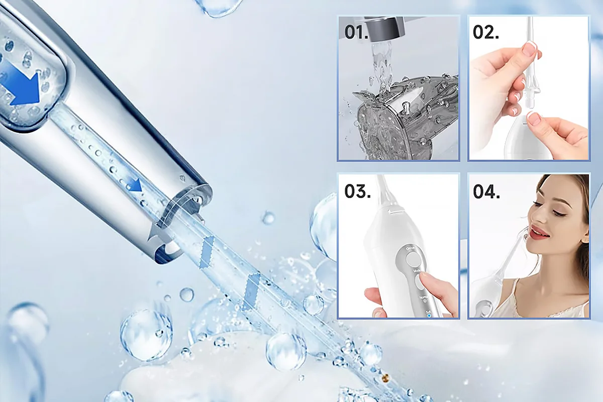 يجعل جهاز الري تنظيف الأسنان أكثر فعالية. يصل ضغط الماء إلى كل زاوية لا يستطيع الخيط العادي والفرشاة الوصول إليها. وهذا يقلل من الكمية الإجمالية للبكتيريا والبلاك بين الأسنان. يمكن أن يعطي نفساً منعشاً على الفور. وعلاوة على ذلك، فإن جهاز الري الفموي الخاص بنا مناسب لتقويم الأسنان وزراعة الأسنان والتيجان والجسور وهو أرخص من زيارات طبيب الأسنان.