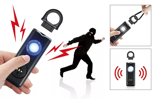 يناسب إنذار الدفاع يديك أو حقيبتك بشكل مثالي، مما يوفر حيزًا ضئيلاً. لا يبدو ثقيلًا أو كبيرًا عند تعليقه على المفاتيح أو الحقائب.