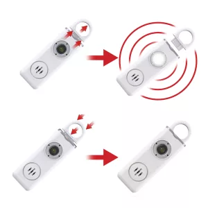 اشعر بالأمان أكثر عند السير بمفردك مع إنذار السلامة المدمج . الصوت المخترق يطرد التهديدات ويُنبه الأشخاص المجاورين. يمكنك تعليقه بسهولة على المفاتيح، مما يجعله مثاليًا للمشي الليلي أو الركض.