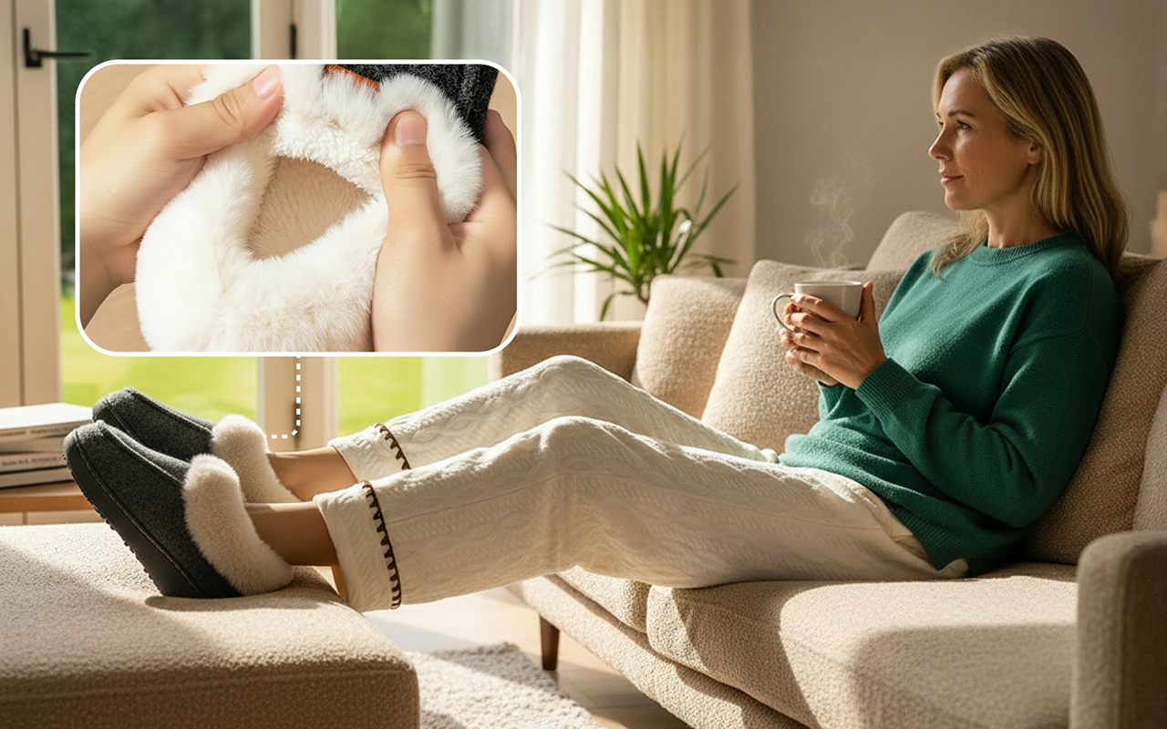 بطانة كثيفة ناعمة تحيط بقدميك بنعومة لطيفة. مثالية للصباحات الباردة أو للاسترخاء بعد يوم عمل داخل المنزل.