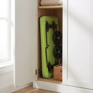 تُطوى العربة إلى حزمة رفيعة تناسب الخزائن الضيقة. الهيكل خفيف الوزن يتدلى بشكل مرتب خلف الأبواب، مما يحرر مساحة ثمينة في الممر.