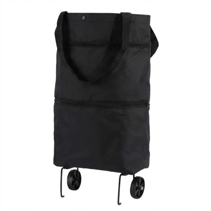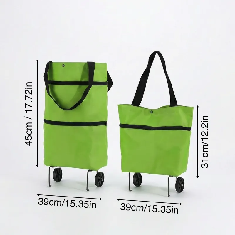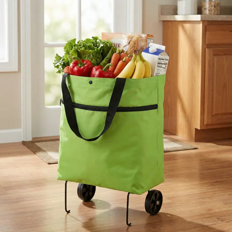 اشتريت هذه العربة بعد أن قلق حفيدي من حملي للأكياس. الآن أدحرج كل شيء إلى المنزل بسلاسة، حتى فوق الحواف. تُخزَّن بشكل مسطح بجانب رف الأحذية.
