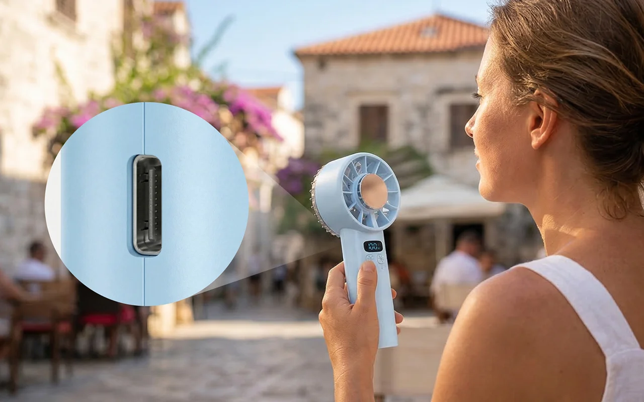 اصطحبت هذه المروحة المبردة إلى مهرجان صيفي. خفيفة الوزن، تناسب جيب الشورت، وشاشة الـ LED الواضحة تخبرني تمامًا بكمية الطاقة المتبقية.