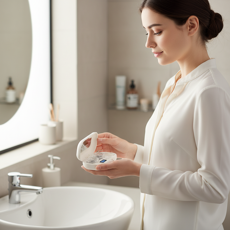 رائع لتوفير الوقت كل صباح. فقط أضع العدسات، أشغل الجهاز، وأحصل على تنظيف عميق أثناء تنظيف أسناني.