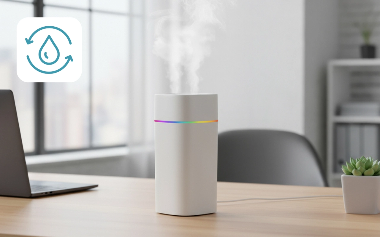 مكتبي أصبح أكثر راحة مع هذا المرطب. الرذاذ البارد يحافظ على الهواء جيدًا، ويسهل نقله جدًا من البيت إلى العمل.