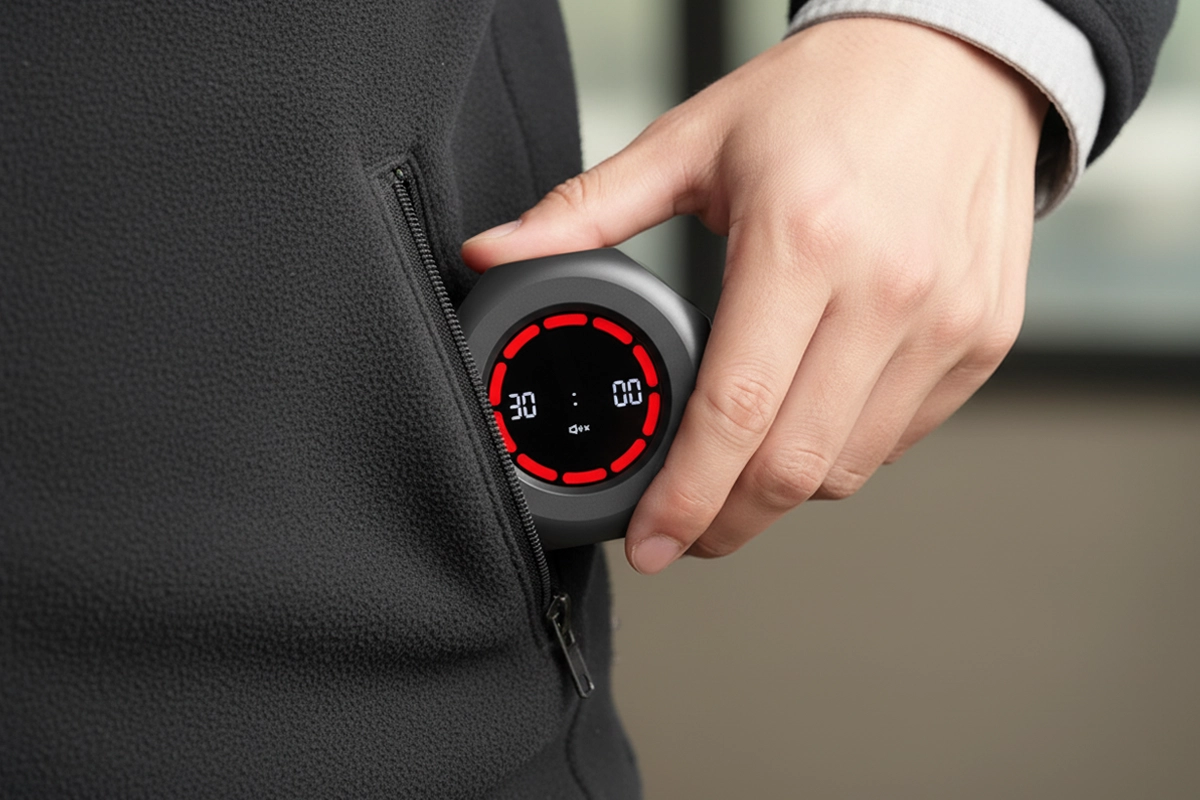 اقلب مؤقت أوروتريكس لبدء العد فورًا. لا حاجة لأزرار أو إعدادات معقدة للاستخدام السريع.