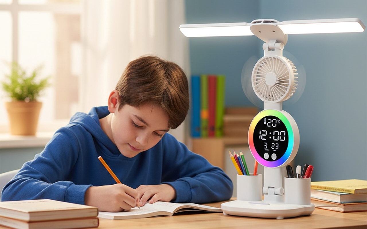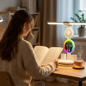 هذا المصباح غيّر طريقة دراستي. الضوء لا يؤذي عيني أبدًا، والمروحة تبقيني باردة طوال الوقت. أحب كيف يمكنني رؤية الوقت بسهولة أيضًا.