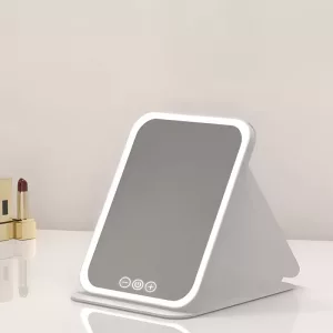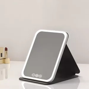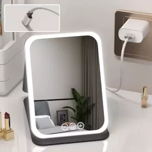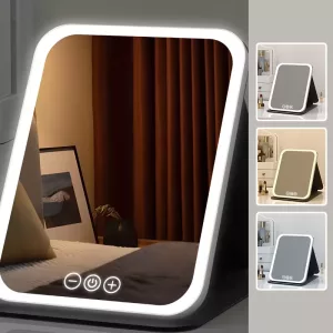 لا عناء بعد اليوم مع الإضاءة السيئة في الغرفة! تجعل مرآة الزينة من تطبيق مستحضرات التجميل سريعًا ودقيقًا وخاليًا من التوتر. حجمها المدمج يناسب أي طاولة زينة أو حمام بسهولة.