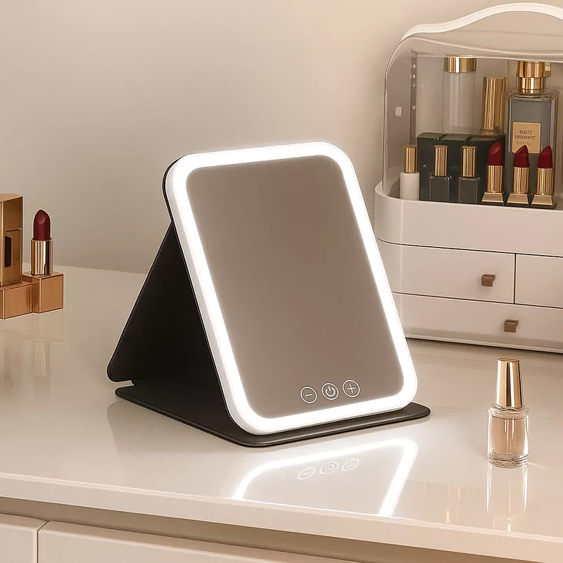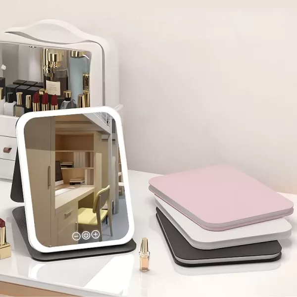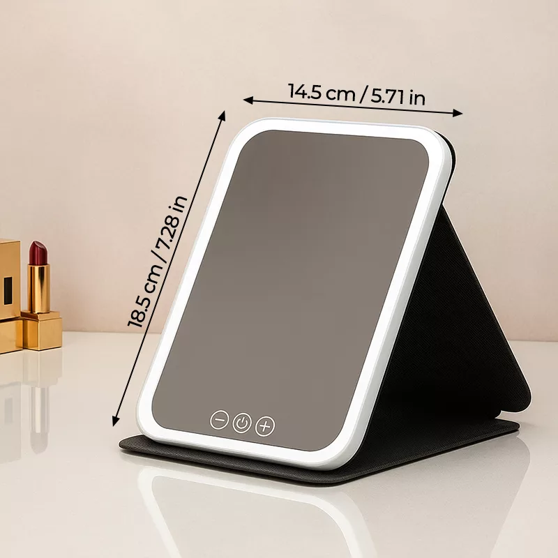 لا عناء بعد اليوم مع الإضاءة السيئة في الغرفة! تجعل مرآة الزينة من تطبيق مستحضرات التجميل سريعًا ودقيقًا وخاليًا من التوتر. حجمها المدمج يناسب أي طاولة زينة أو حمام بسهولة.