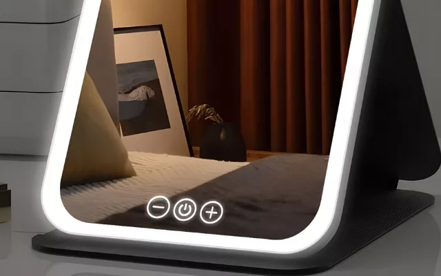 لا عناء بعد اليوم مع الإضاءة السيئة في الغرفة! تجعل مرآة الزينة من تطبيق مستحضرات التجميل سريعًا ودقيقًا وخاليًا من التوتر. حجمها المدمج يناسب أي طاولة زينة أو حمام بسهولة.