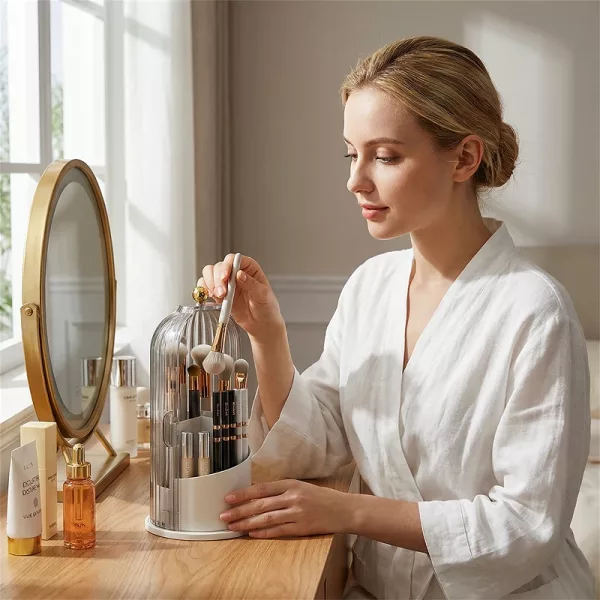 الطاولات الفوضوية تجعل العثور على الأشياء صعبًا وتهدر الوقت. منظم المكياج من ينظم كل شيء ويحافظ على ترتيب مساحتك. تصميمه الذكي يتيح لك رؤية كل فرشاة بسرعة. كل أداة تبقى محمية وجاهزة للاستخدام.