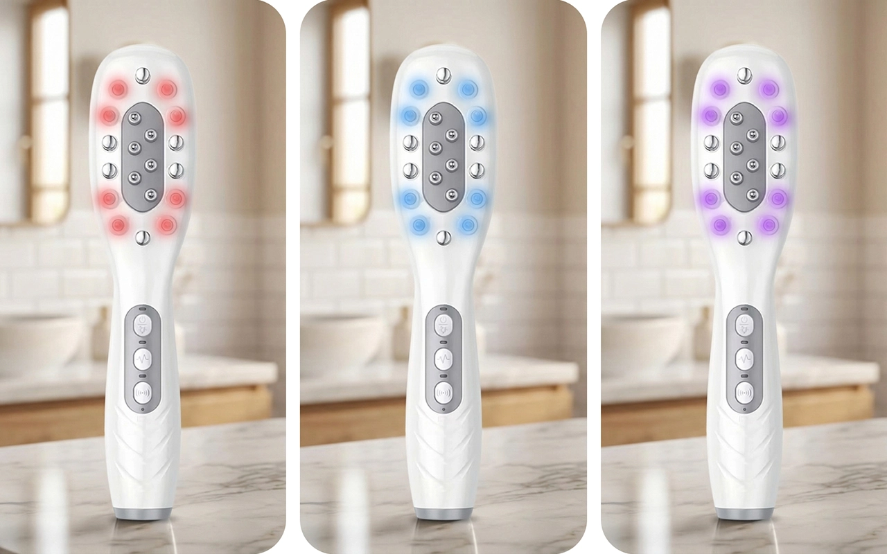 يستهدف الضوء الأحمر والأزرق والبنفسجي احتياجات فروة الرأس المختلفة. تساعد هذه الأوضاع على تقوية الجذور وشفاء البصيلات وتقليل التهيج بسرعة.