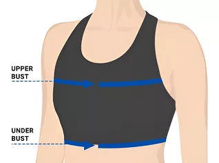 - 2. لقياس أسفل الصدر، قومي بلف شريط القياس حول صدرك من الأسفل مباشرة وبشكل متساوي.